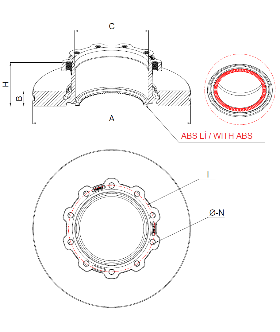 | BALATA ÇAPI | BALATA BOYU | KOMPLE BOY | GÖBEK ÇAPI | DELİK MERKEZİ | DELİK SAYISI | DELİK ÇAPI |