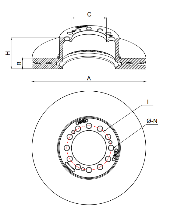 | BALATA ÇAPI | BALATA BOYU | KOMPLE BOY | GÖBEK ÇAPI | DELİK MERKEZİ | DELİK SAYISI | DELİK ÇAPI |