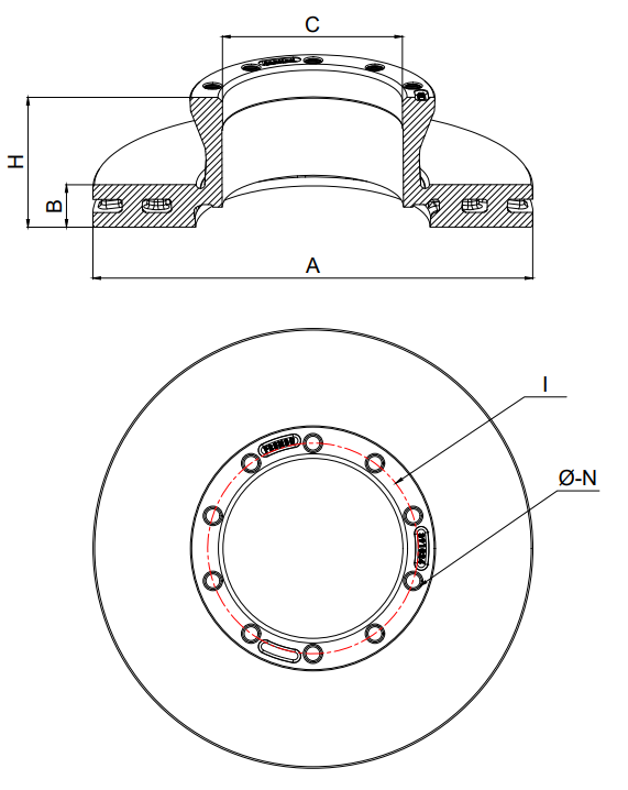 | BALATA ÇAPI | BALATA BOYU | KOMPLE BOY | GÖBEK ÇAPI | DELİK MERKEZİ | DELİK SAYISI | DELİK ÇAPI |