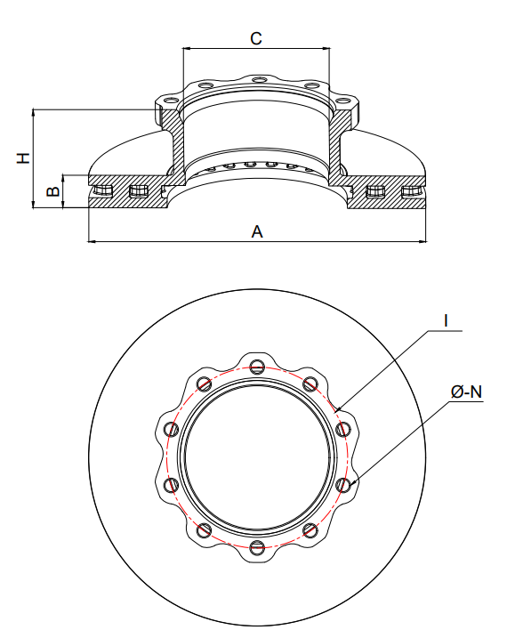 | BALATA ÇAPI | BALATA BOYU | KOMPLE BOY | GÖBEK ÇAPI | DELİK MERKEZİ | DELİK SAYISI | DELİK ÇAPI |