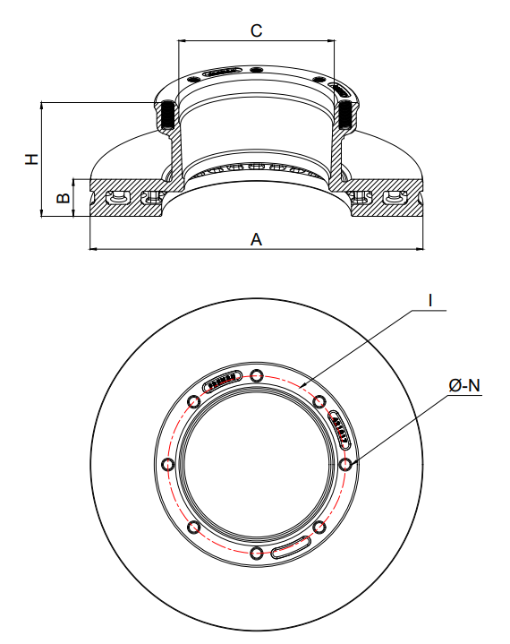 | BALATA ÇAPI | BALATA BOYU | KOMPLE BOY | GÖBEK ÇAPI | DELİK MERKEZİ | DELİK SAYISI | DELİK ÇAPI |
