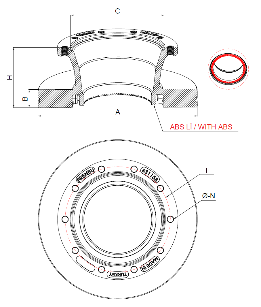 | BALATA ÇAPI | BALATA BOYU | KOMPLE BOY | GÖBEK ÇAPI | DELİK MERKEZİ | DELİK SAYISI | DELİK ÇAPI |