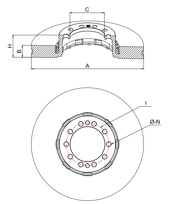 | BALATA ÇAPI | BALATA BOYU | KOMPLE BOY | GÖBEK ÇAPI | DELİK MERKEZİ | DELİK SAYISI | DELİK ÇAPI |