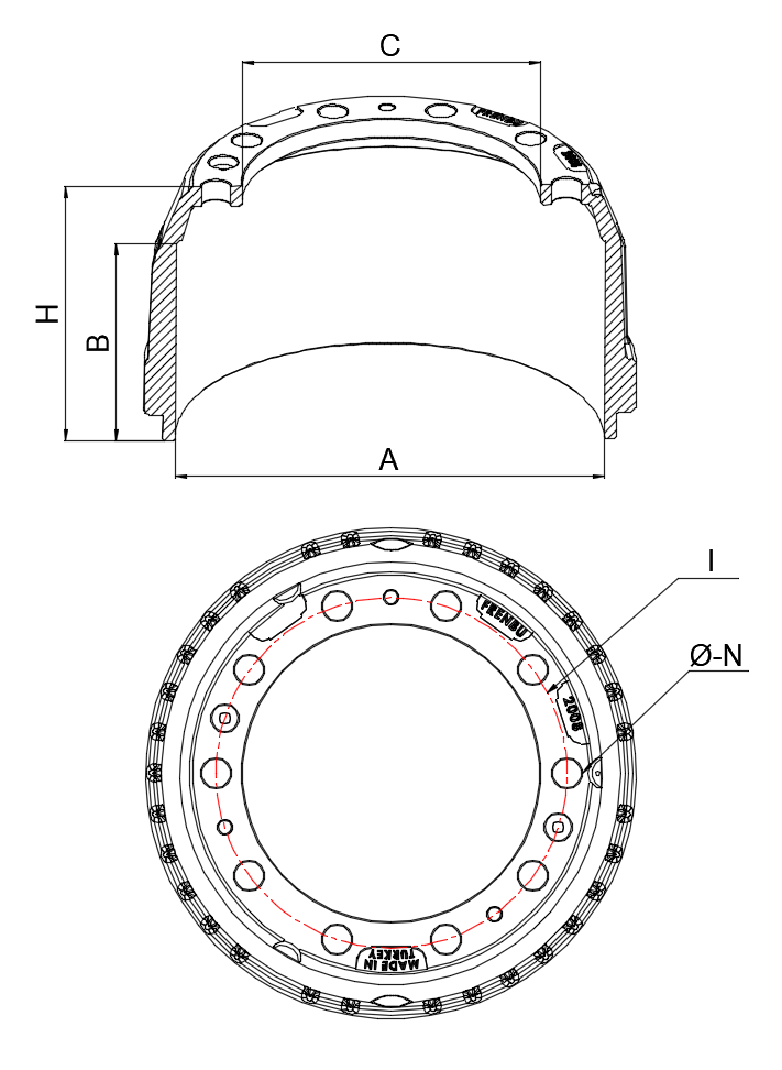 | BALATA ÇAPI | BALATA BOYU | KOMPLE BOY | GÖBEK ÇAPI | DELİK MERKEZİ | DELİK SAYISI | DELİK ÇAPI |