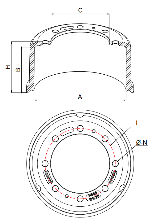 | BALATA ÇAPI | BALATA BOYU | KOMPLE BOY | GÖBEK ÇAPI | DELİK MERKEZİ | DELİK SAYISI | DELİK ÇAPI |
