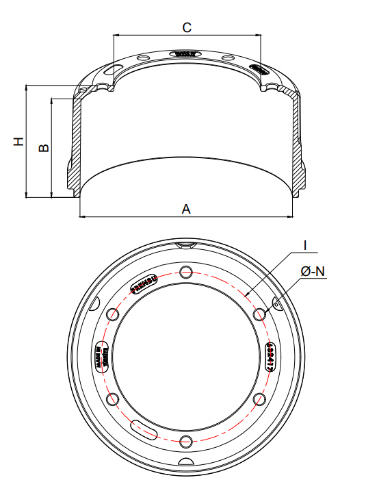 | BALATA ÇAPI | BALATA BOYU | KOMPLE BOY | GÖBEK ÇAPI | DELİK MERKEZİ | DELİK SAYISI | DELİK ÇAPI |