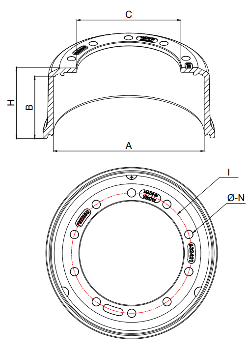 | BALATA ÇAPI | BALATA BOYU | KOMPLE BOY | GÖBEK ÇAPI | DELİK MERKEZİ | DELİK SAYISI | DELİK ÇAPI |