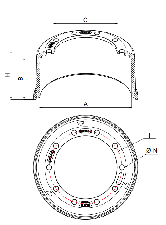 | BALATA ÇAPI | BALATA BOYU | KOMPLE BOY | GÖBEK ÇAPI | DELİK MERKEZİ | DELİK SAYISI | DELİK ÇAPI |