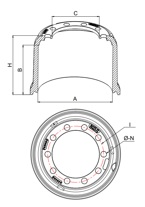 | BALATA ÇAPI | BALATA BOYU | KOMPLE BOY | GÖBEK ÇAPI | DELİK MERKEZİ | DELİK SAYISI | DELİK ÇAPI |