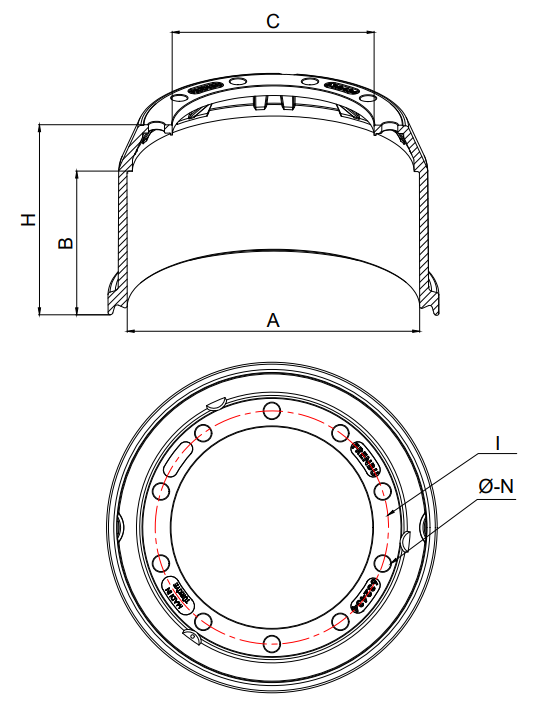 | BALATA ÇAPI | BALATA BOYU | KOMPLE BOY | GÖBEK ÇAPI | DELİK MERKEZİ | DELİK SAYISI | DELİK ÇAPI |