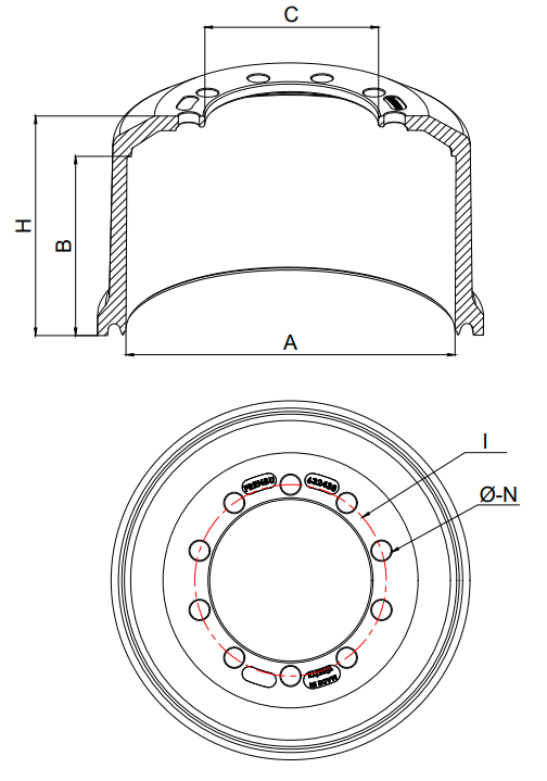 | BALATA ÇAPI | BALATA BOYU | KOMPLE BOY | GÖBEK ÇAPI | DELİK MERKEZİ | DELİK SAYISI | DELİK ÇAPI |