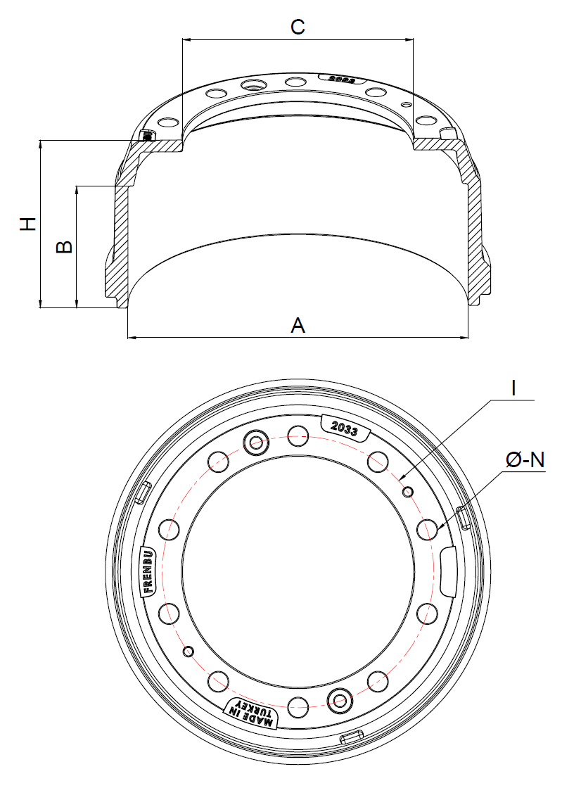 | BALATA ÇAPI | BALATA BOYU | KOMPLE BOY | GÖBEK ÇAPI | DELİK MERKEZİ | DELİK SAYISI | DELİK ÇAPI |