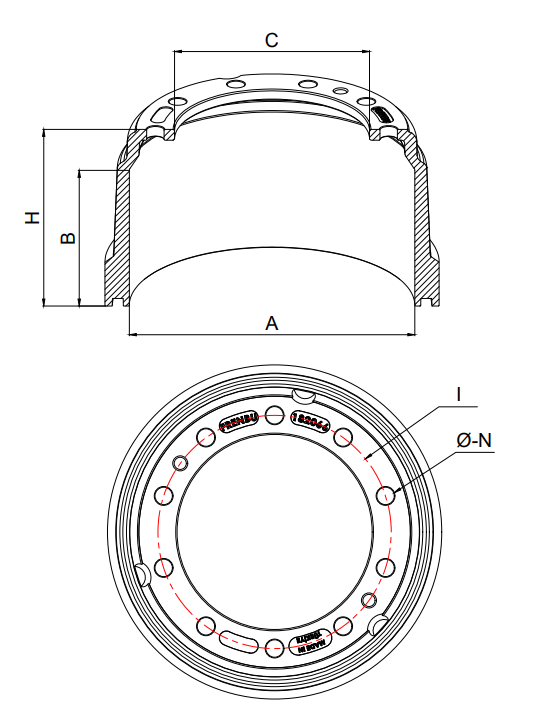 | BALATA ÇAPI | BALATA BOYU | KOMPLE BOY | GÖBEK ÇAPI | DELİK MERKEZİ | DELİK SAYISI | DELİK ÇAPI |