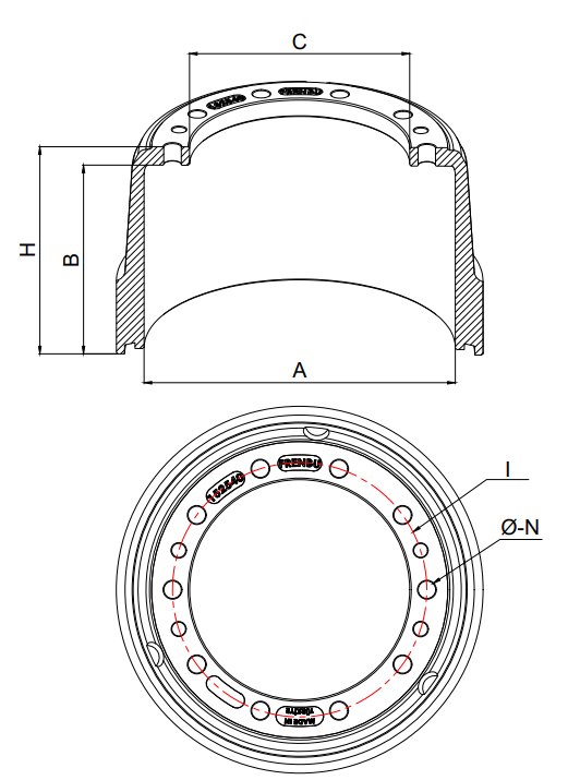 | BALATA ÇAPI | BALATA BOYU | KOMPLE BOY | GÖBEK ÇAPI | DELİK MERKEZİ | DELİK SAYISI | DELİK ÇAPI |