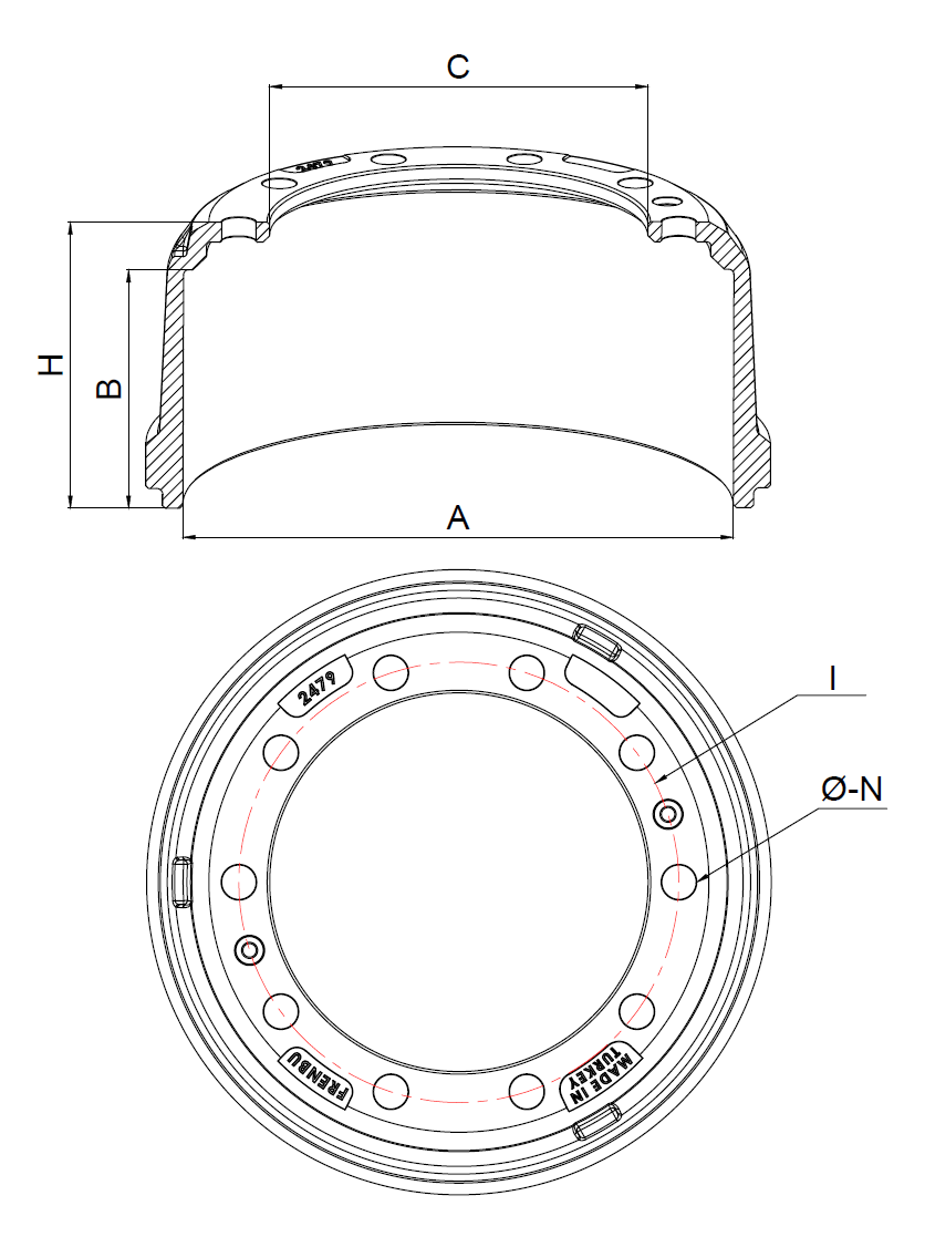| BALATA ÇAPI | BALATA BOYU | KOMPLE BOY | GÖBEK ÇAPI | DELİK MERKEZİ | DELİK SAYISI | DELİK ÇAPI |
