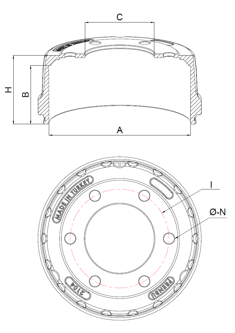 | BALATA ÇAPI | BALATA BOYU | KOMPLE BOY | GÖBEK ÇAPI | DELİK MERKEZİ | DELİK SAYISI | DELİK ÇAPI |