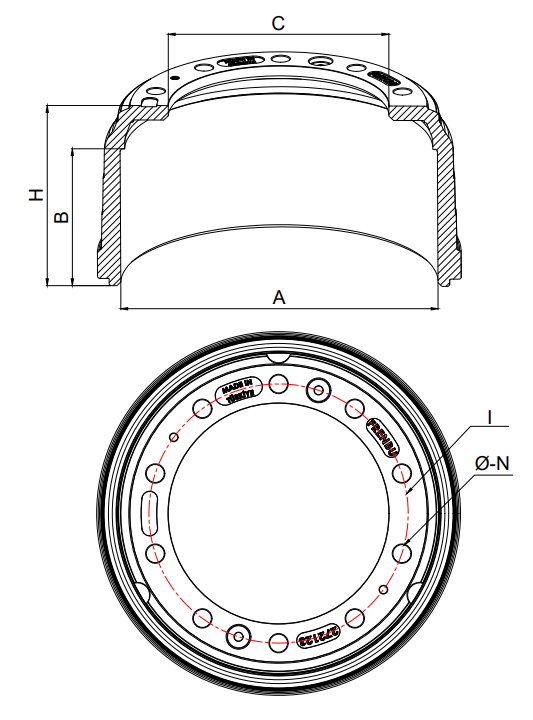 | BALATA ÇAPI | BALATA BOYU | KOMPLE BOY | GÖBEK ÇAPI | DELİK MERKEZİ | DELİK SAYISI | DELİK ÇAPI |