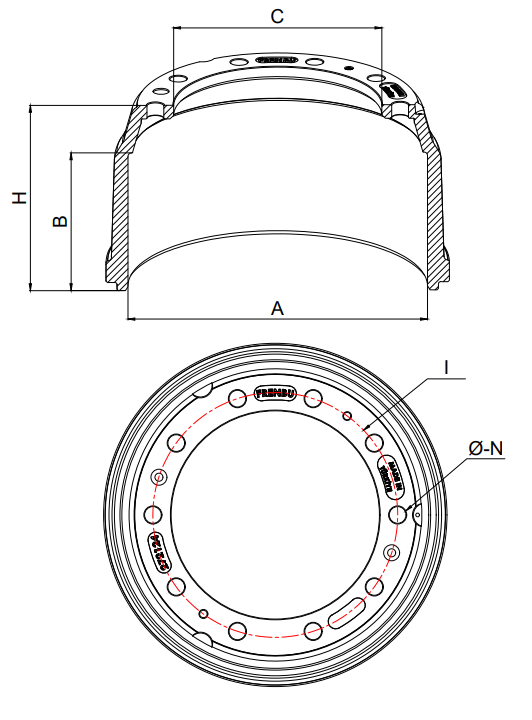 | BALATA ÇAPI | BALATA BOYU | KOMPLE BOY | GÖBEK ÇAPI | DELİK MERKEZİ | DELİK SAYISI | DELİK ÇAPI |
