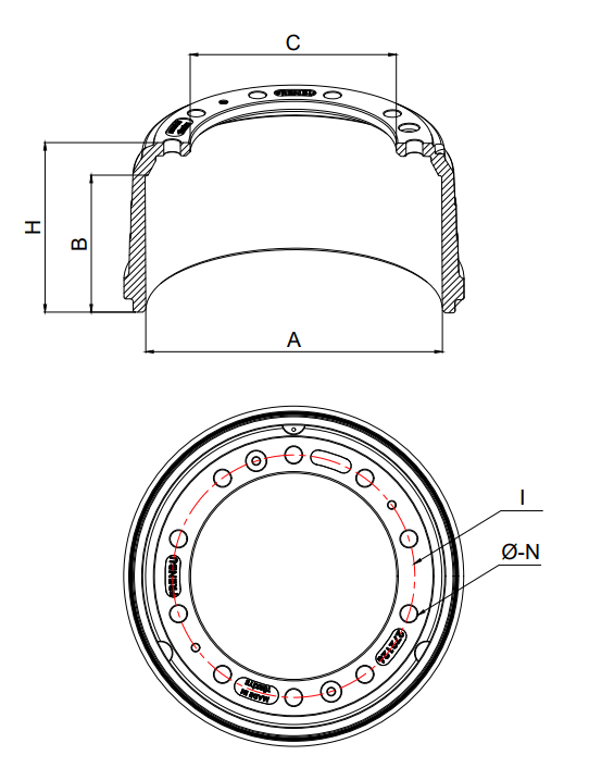 | BALATA ÇAPI | BALATA BOYU | KOMPLE BOY | GÖBEK ÇAPI | DELİK MERKEZİ | DELİK SAYISI | DELİK ÇAPI |