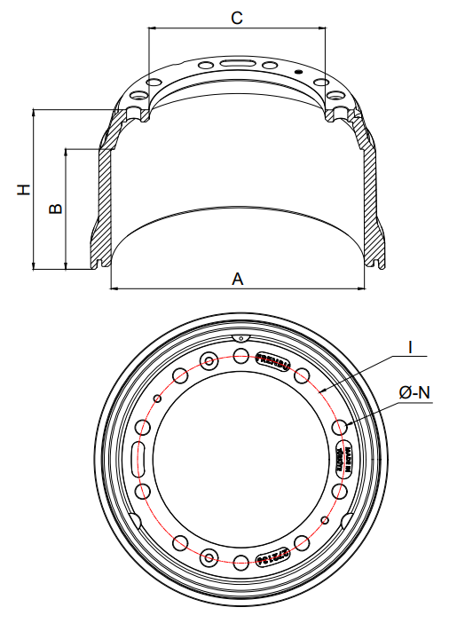 | BALATA ÇAPI | BALATA BOYU | KOMPLE BOY | GÖBEK ÇAPI | DELİK MERKEZİ | DELİK SAYISI | DELİK ÇAPI |