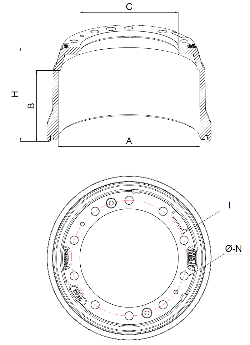 | BALATA ÇAPI | BALATA BOYU | KOMPLE BOY | GÖBEK ÇAPI | DELİK MERKEZİ | DELİK SAYISI | DELİK ÇAPI |