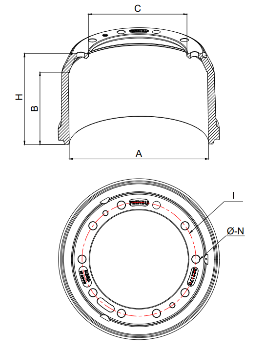 | BALATA ÇAPI | BALATA BOYU | KOMPLE BOY | GÖBEK ÇAPI | DELİK MERKEZİ | DELİK SAYISI | DELİK ÇAPI |