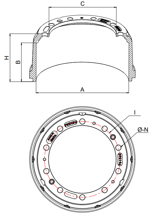 | BALATA ÇAPI | BALATA BOYU | KOMPLE BOY | GÖBEK ÇAPI | DELİK MERKEZİ | DELİK SAYISI | DELİK ÇAPI |
