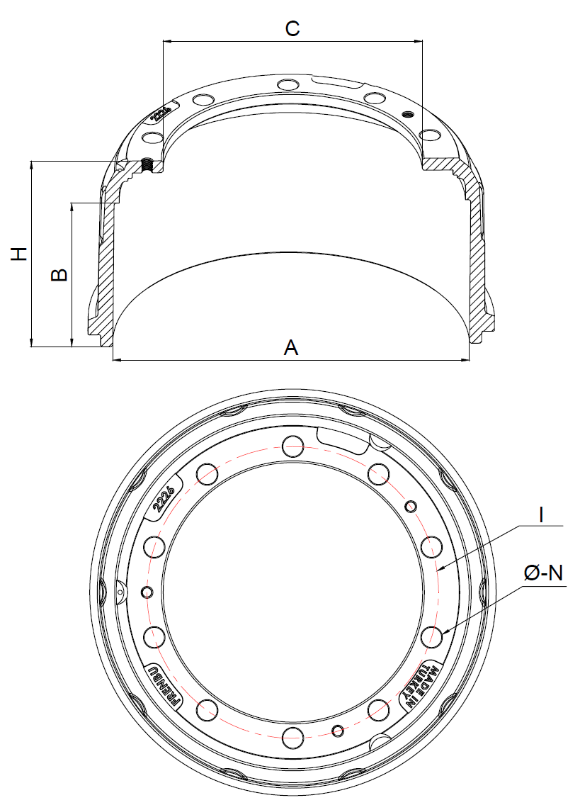| BALATA ÇAPI | BALATA BOYU | KOMPLE BOY | GÖBEK ÇAPI | DELİK MERKEZİ | DELİK SAYISI | DELİK ÇAPI |