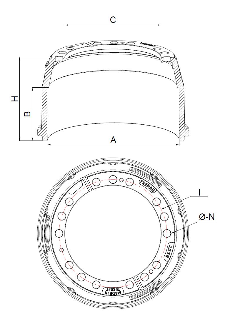 | BALATA ÇAPI | BALATA BOYU | KOMPLE BOY | GÖBEK ÇAPI | DELİK MERKEZİ | DELİK SAYISI | DELİK ÇAPI |