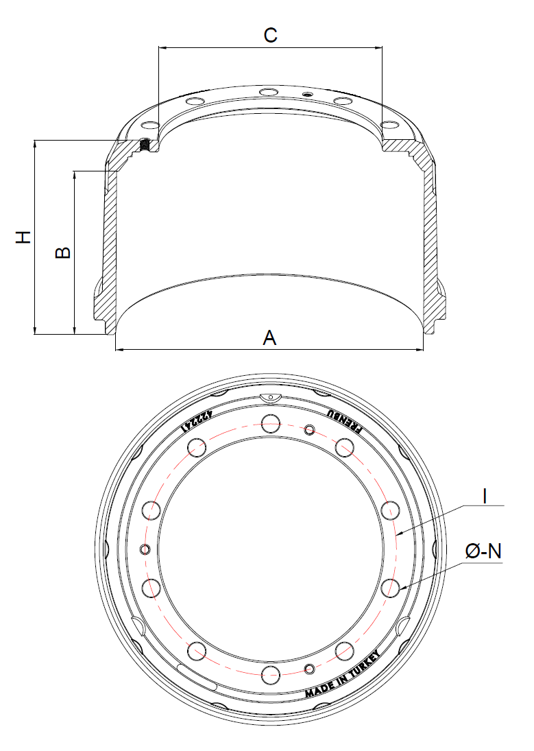 | BALATA ÇAPI | BALATA BOYU | KOMPLE BOY | GÖBEK ÇAPI | DELİK MERKEZİ | DELİK SAYISI | DELİK ÇAPI |
