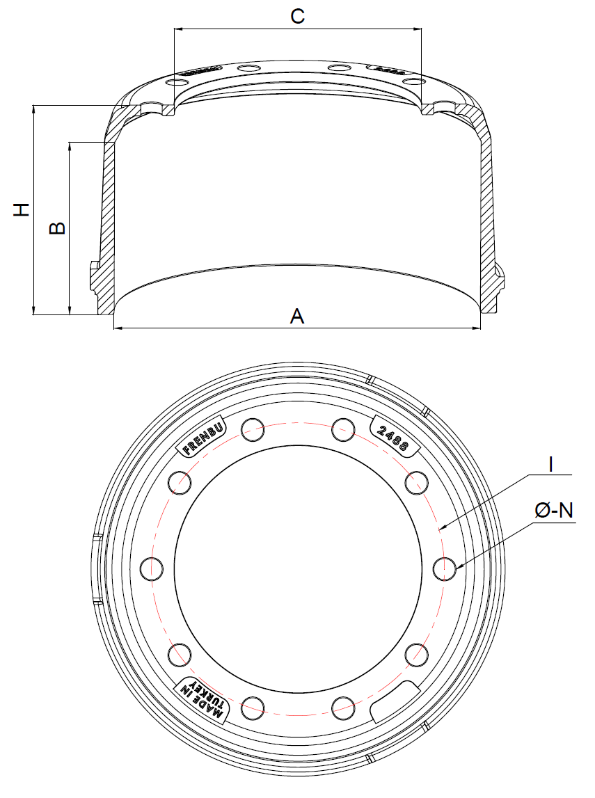 | BALATA ÇAPI | BALATA BOYU | KOMPLE BOY | GÖBEK ÇAPI | DELİK MERKEZİ | DELİK SAYISI | DELİK ÇAPI |