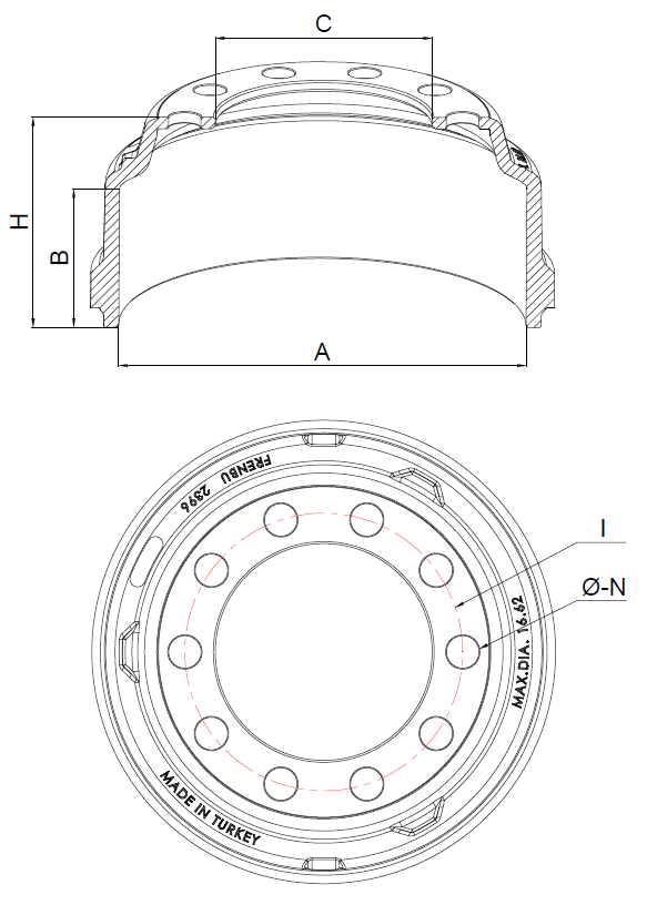 | BALATA ÇAPI | BALATA BOYU | KOMPLE BOY | GÖBEK ÇAPI | DELİK MERKEZİ | DELİK SAYISI | DELİK ÇAPI |