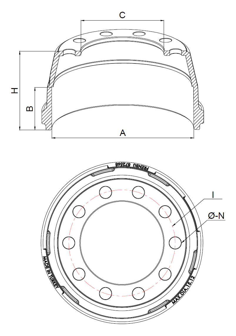 | BALATA ÇAPI | BALATA BOYU | KOMPLE BOY | GÖBEK ÇAPI | DELİK MERKEZİ | DELİK SAYISI | DELİK ÇAPI |