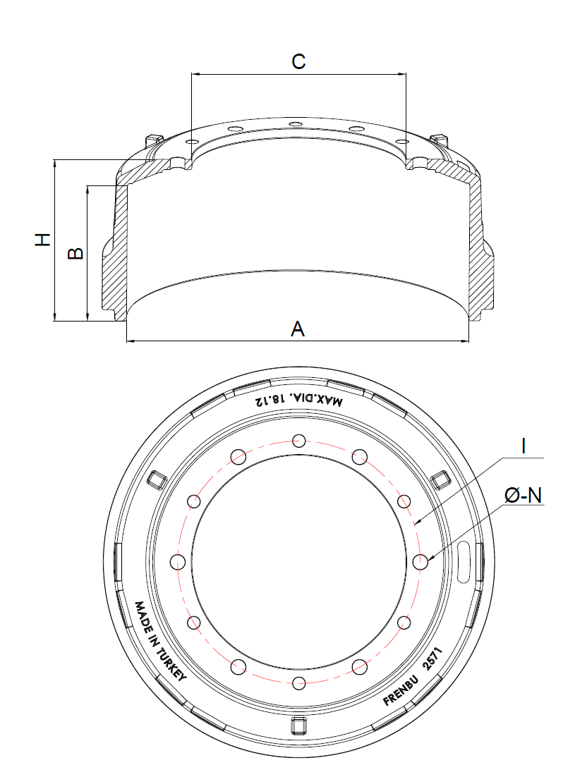 | BALATA ÇAPI | BALATA BOYU | KOMPLE BOY | GÖBEK ÇAPI | DELİK MERKEZİ | DELİK SAYISI | DELİK ÇAPI |