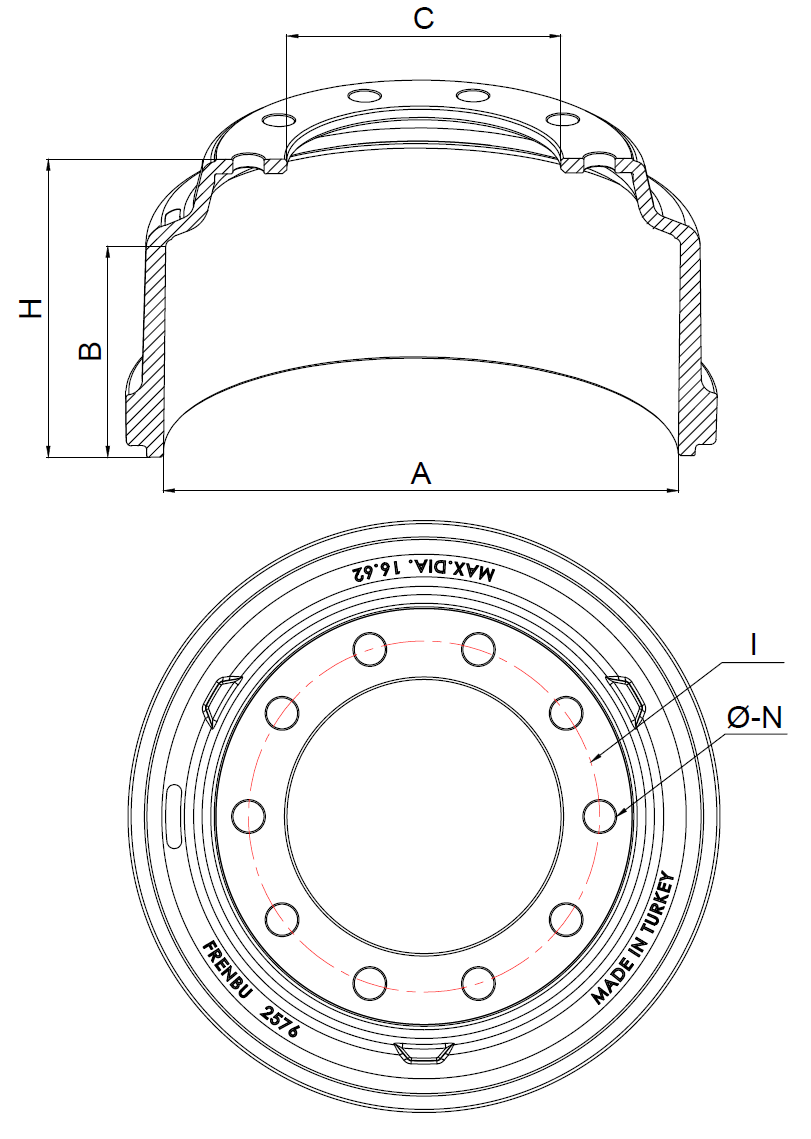 | BALATA ÇAPI | BALATA BOYU | KOMPLE BOY | GÖBEK ÇAPI | DELİK MERKEZİ | DELİK SAYISI | DELİK ÇAPI |