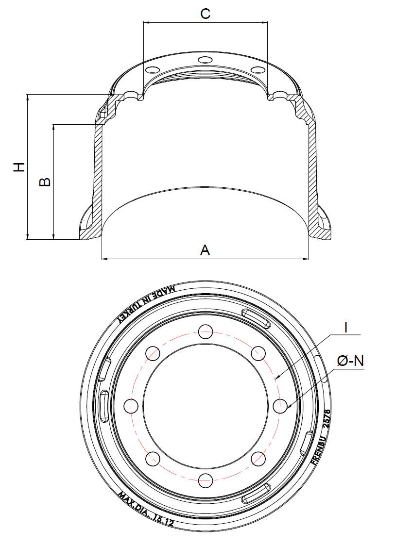 | BALATA ÇAPI | BALATA BOYU | KOMPLE BOY | GÖBEK ÇAPI | DELİK MERKEZİ | DELİK SAYISI | DELİK ÇAPI |