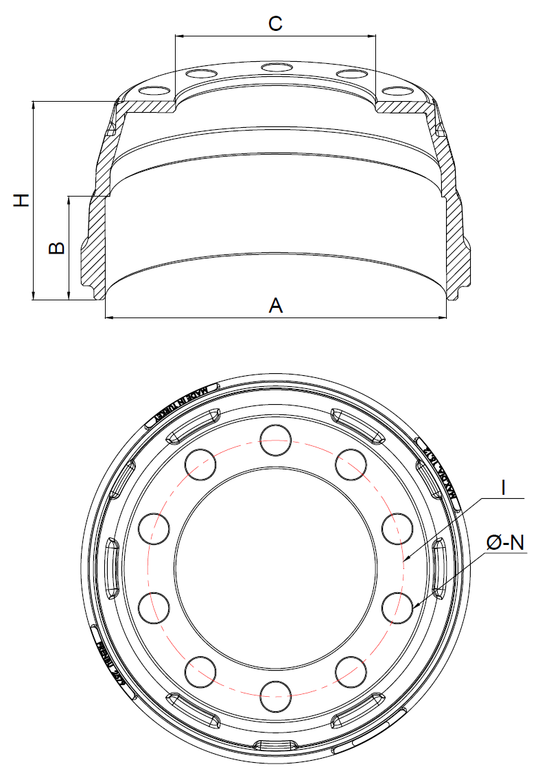 | BALATA ÇAPI | BALATA BOYU | KOMPLE BOY | GÖBEK ÇAPI | DELİK MERKEZİ | DELİK SAYISI | DELİK ÇAPI |