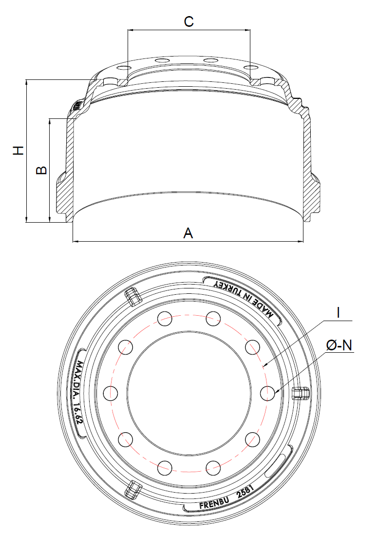 | BALATA ÇAPI | BALATA BOYU | KOMPLE BOY | GÖBEK ÇAPI | DELİK MERKEZİ | DELİK SAYISI | DELİK ÇAPI |