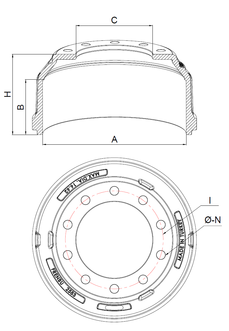 | BALATA ÇAPI | BALATA BOYU | KOMPLE BOY | GÖBEK ÇAPI | DELİK MERKEZİ | DELİK SAYISI | DELİK ÇAPI |