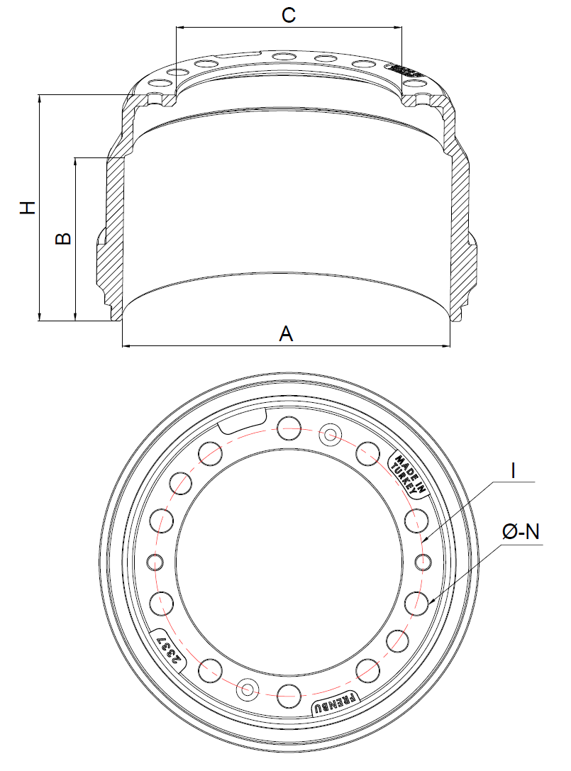 | BALATA ÇAPI | BALATA BOYU | KOMPLE BOY | GÖBEK ÇAPI | DELİK MERKEZİ | DELİK SAYISI | DELİK ÇAPI |