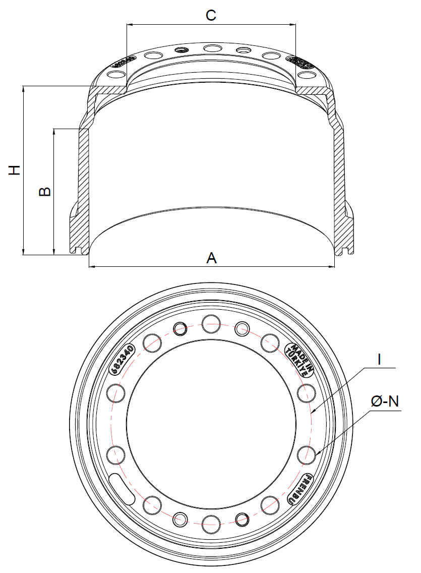 | BALATA ÇAPI | BALATA BOYU | KOMPLE BOY | GÖBEK ÇAPI | DELİK MERKEZİ | DELİK SAYISI | DELİK ÇAPI |