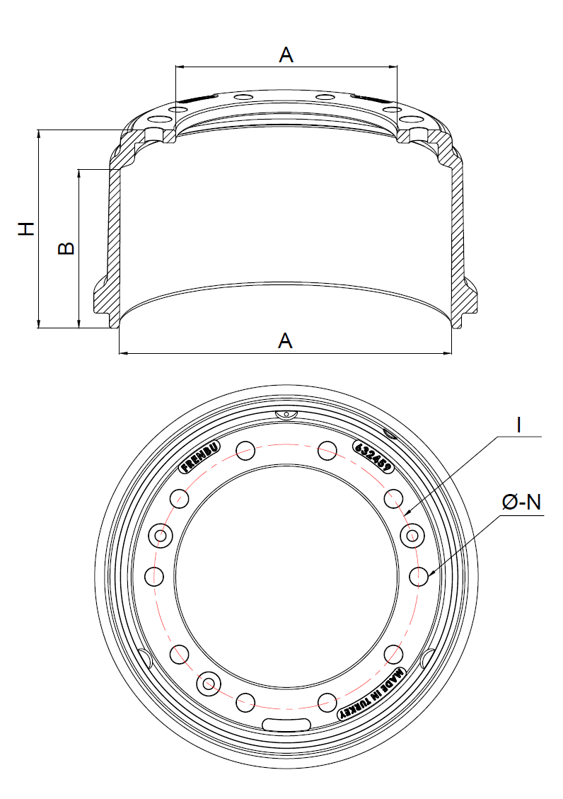 | BALATA ÇAPI | BALATA BOYU | KOMPLE BOY | GÖBEK ÇAPI | DELİK MERKEZİ | DELİK SAYISI | DELİK ÇAPI |