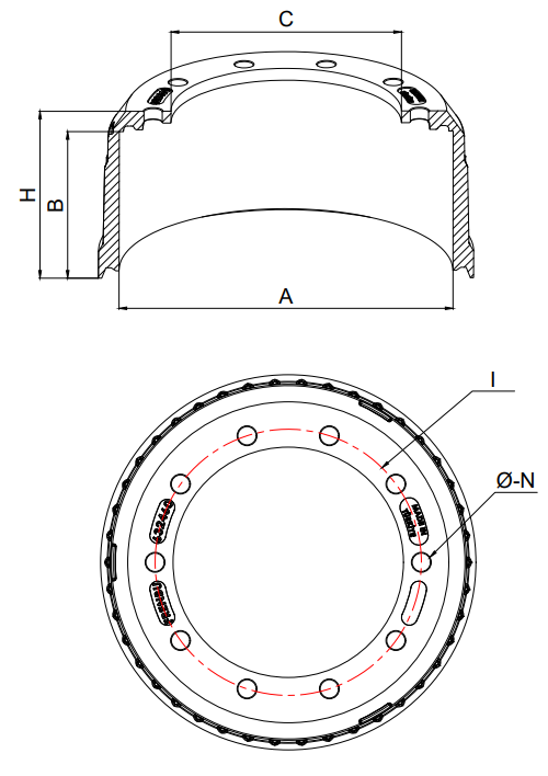| BALATA ÇAPI | BALATA BOYU | KOMPLE BOY | GÖBEK ÇAPI | DELİK MERKEZİ | DELİK SAYISI | DELİK ÇAPI |