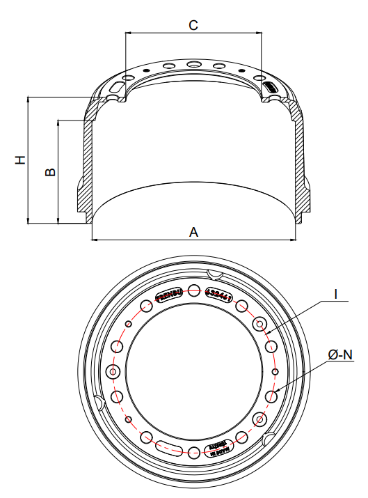 | BALATA ÇAPI | BALATA BOYU | KOMPLE BOY | GÖBEK ÇAPI | DELİK MERKEZİ | DELİK SAYISI | DELİK ÇAPI |