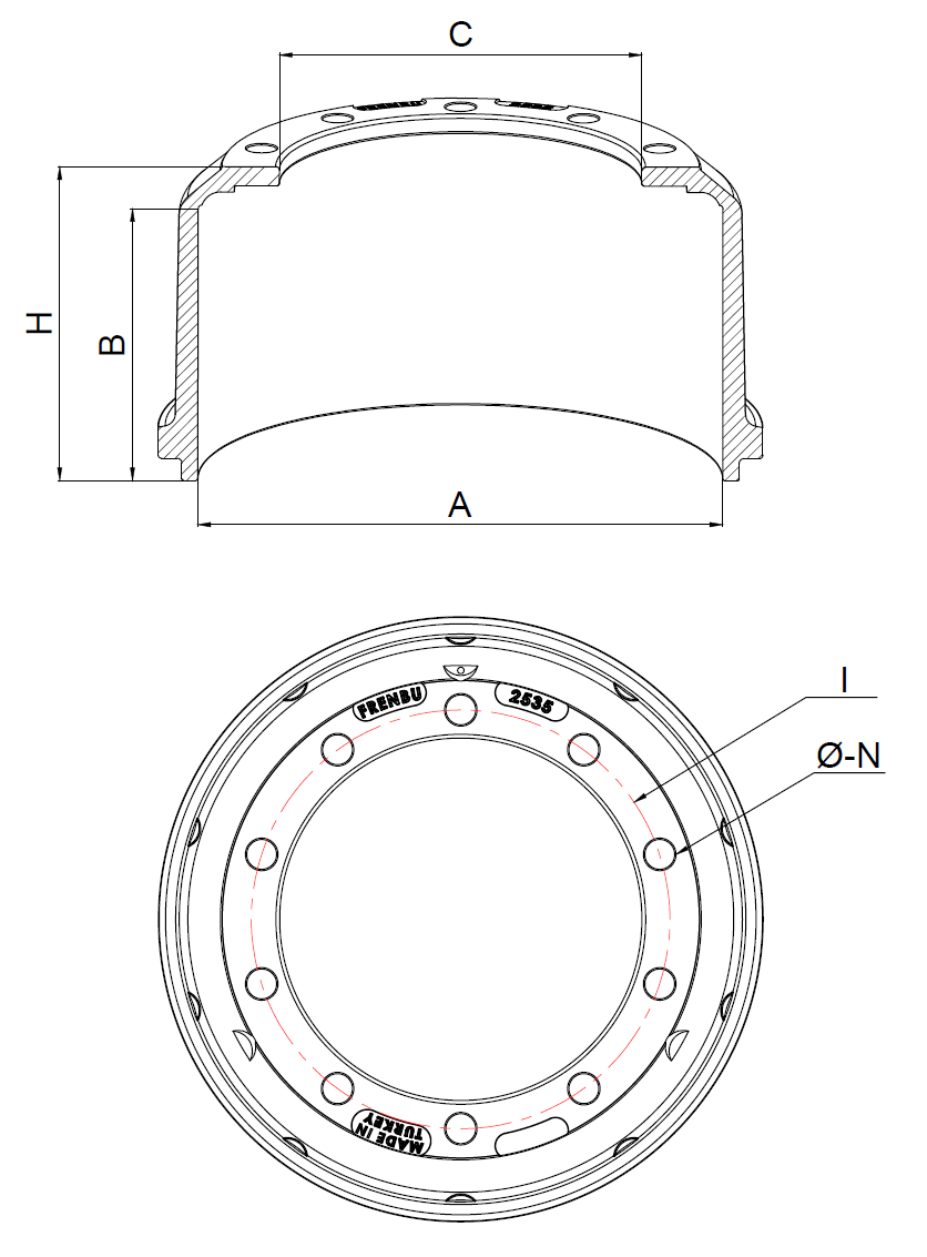 | BALATA ÇAPI | BALATA BOYU | KOMPLE BOY | GÖBEK ÇAPI | DELİK MERKEZİ | DELİK SAYISI | DELİK ÇAPI |
