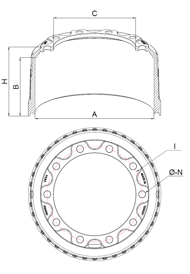 | BALATA ÇAPI | BALATA BOYU | KOMPLE BOY | GÖBEK ÇAPI | DELİK MERKEZİ | DELİK SAYISI | DELİK ÇAPI |