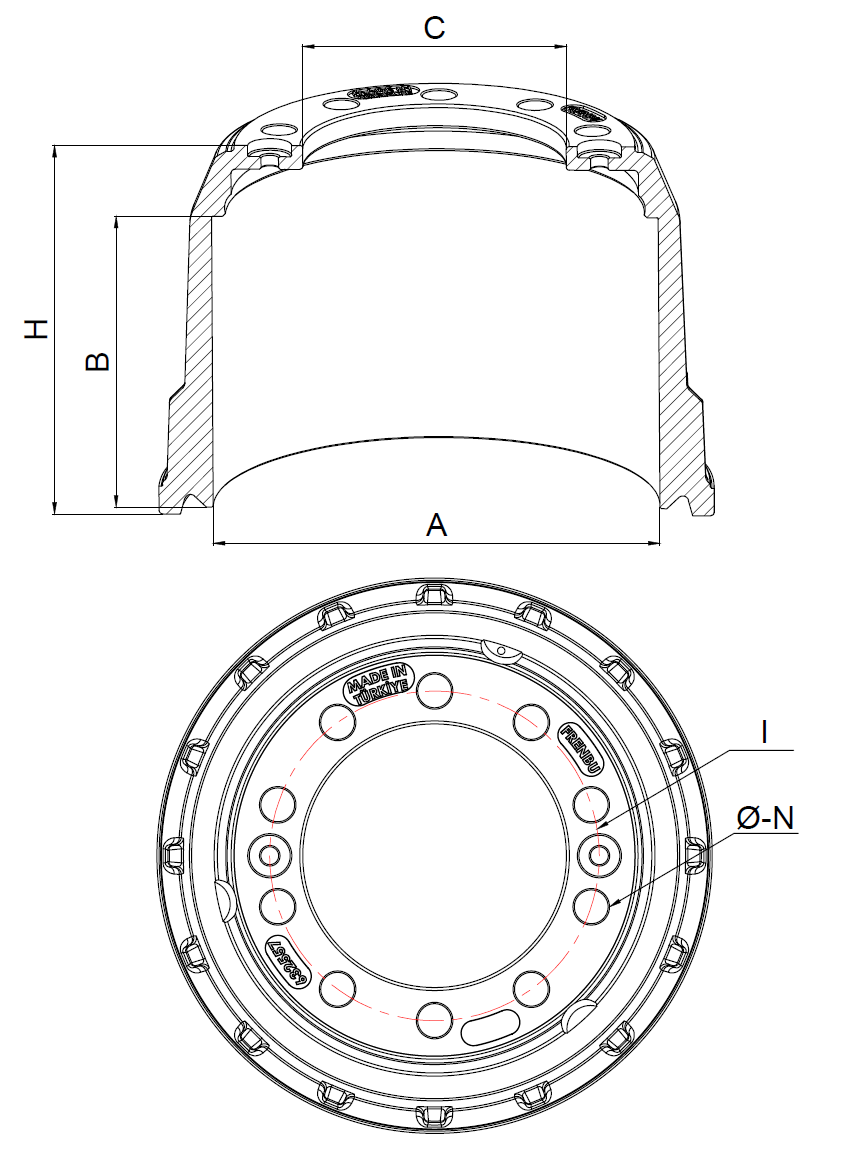 | BALATA ÇAPI | BALATA BOYU | KOMPLE BOY | GÖBEK ÇAPI | DELİK MERKEZİ | DELİK SAYISI | DELİK ÇAPI |