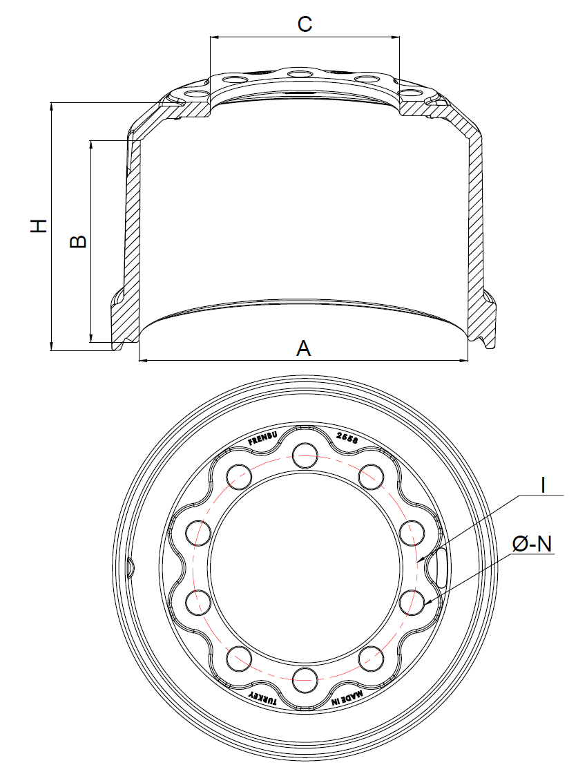 | BALATA ÇAPI | BALATA BOYU | KOMPLE BOY | GÖBEK ÇAPI | DELİK MERKEZİ | DELİK SAYISI | DELİK ÇAPI |